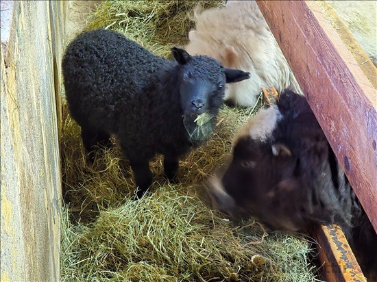 Við settum lambærnar inn í morgun. Krummarnir voru svo