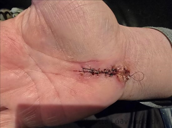 kom. Það á að taka saumana á föstudaginn og þá verður