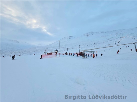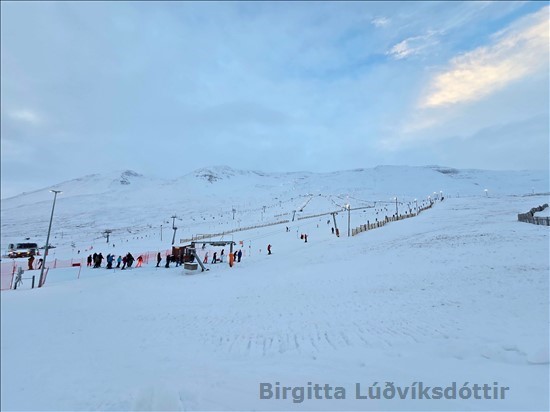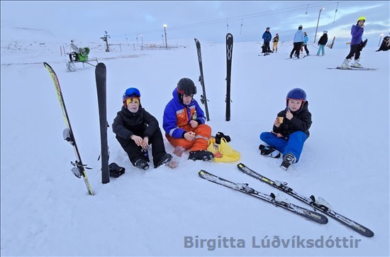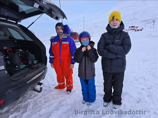 Ég fór með þrjá á skíði í dag