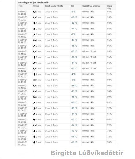 clockhere Birgitta Lúðvíksdóttir 820-7756 23. júlí, 1962 Möðruvellir 3 Hörgársveit Áhugamanneskja um sauðfjárrækt. Er með kindur á Möðruvöllum í Hörgársveit Einar Breki, kom í heiminn event has passed 14 year 3 months 26 days Haukur Nói, kom í heiminn event has passed 11 year 5 months 29 days Birgitta Ósk, kom í heiminn event has passed 3 year 11 months 27 days Links