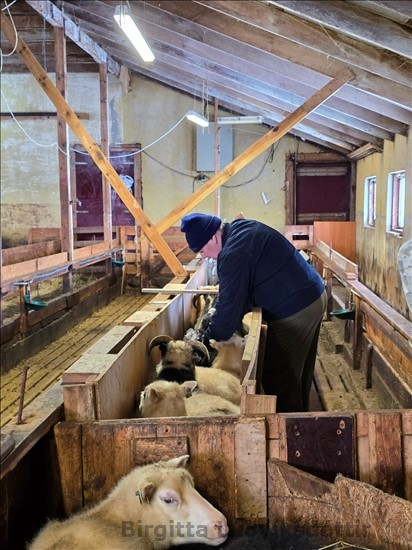 Þórður að sprauta ærnar í ganginum