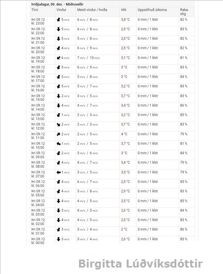 er um 3 stiga hiti úti. Sami hiti og ég var með í ísskápnum.