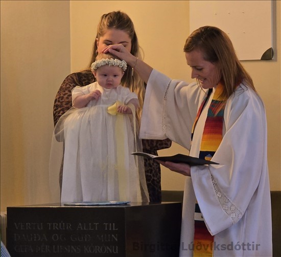 Við fórum í skírn í Ólafsffirði í dag. Það var verið að skíra