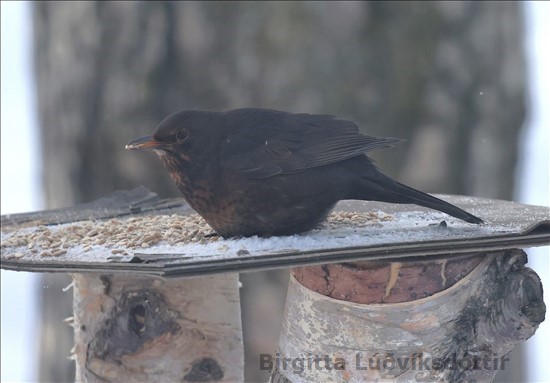 Svartþrastarkerling sem birtist hér í garðinum í dag