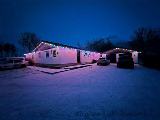 Við kveiktum útijólaljósin á afmælinu hans Þórðar. Nú líður