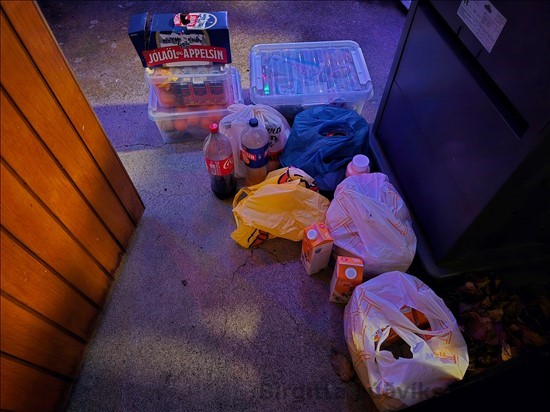 við verðum að hafa allt sem var í ísskápnum úti á palli. Það