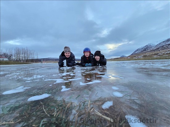 Smá útivera. Komið flott svell á túnið. Strákarnir kunna að