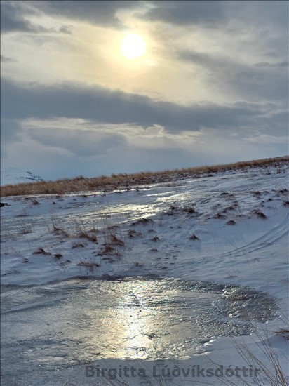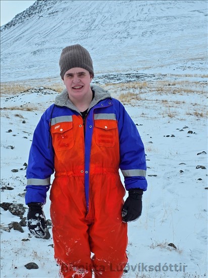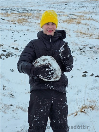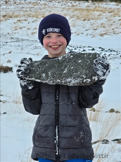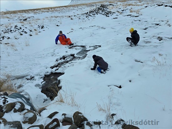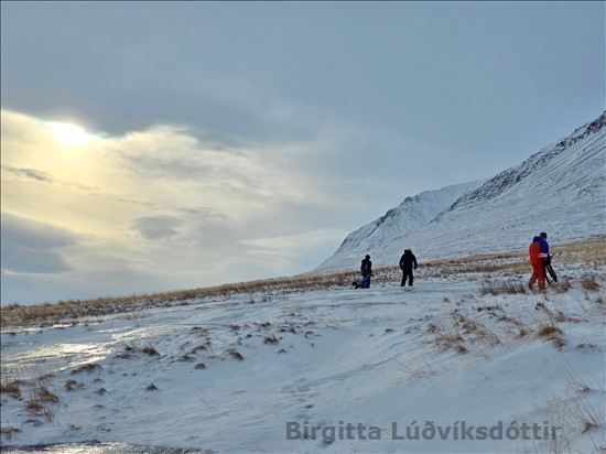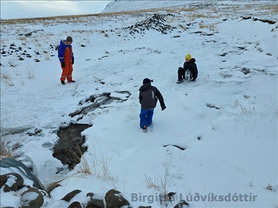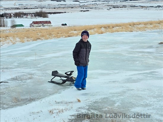 skóla. Þeir renndu sér á sleða niður klaka. Voða gaman