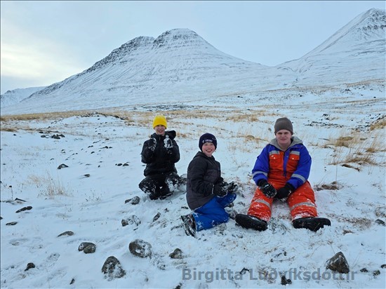Ég fór svo með strákana upp í fjallshólf til að leika sér, eftir