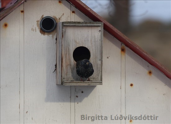 Starinn er mikið að pæla í þessum varpkassa, sem er á litlu